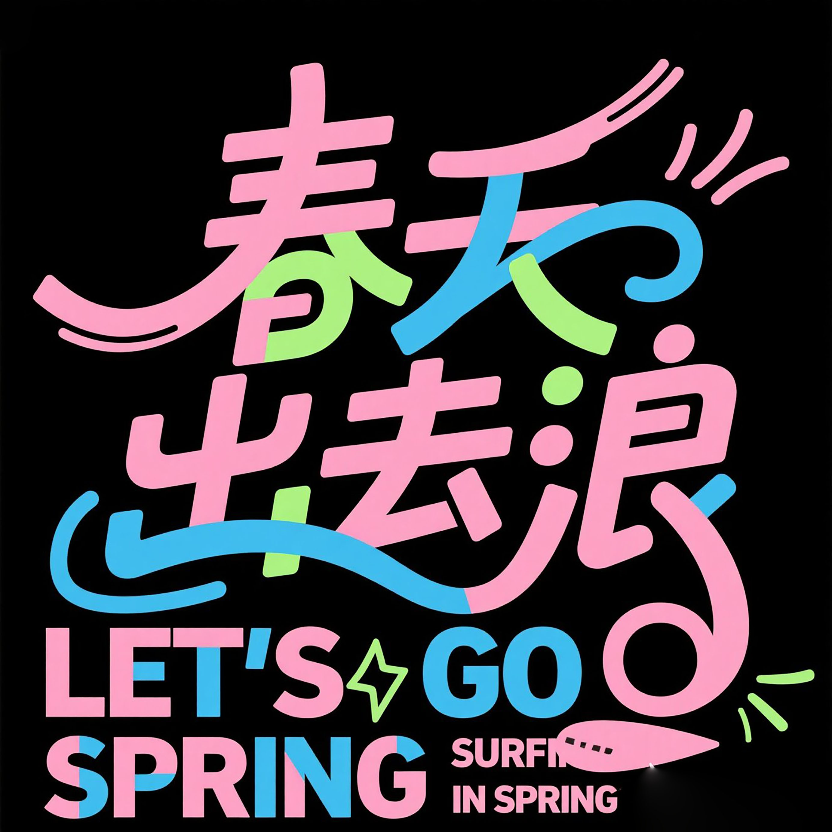 手写变形字体设计“春游go 踏青趣”,适合做春天海报标题使用,活泼可爱风格,纯色背景。大面积留白