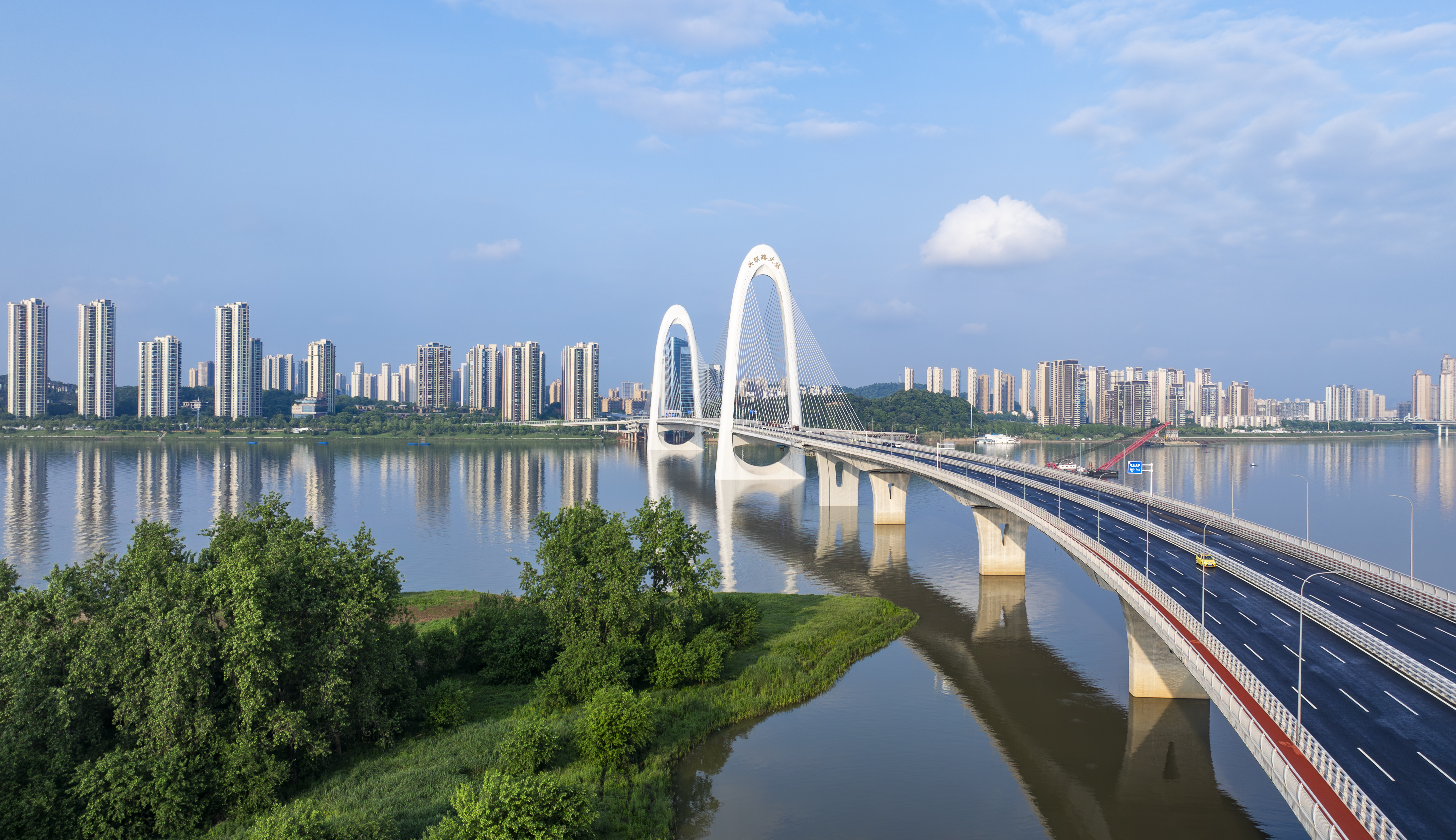 现代中国城市的繁荣景象,融合了传统与现代元素。画面中,高楼大厦林立,体现出现代都市的繁华与发展;同时,又有古典风格的建筑,保留了传统文化的韵味。轨道交通(列车、地铁等)穿梭其中,再加入这张桥融合到画面里,展现出城市交通的便捷与高效。祥云等传统元素的运用,增添了画面的文化底蕴,整体色彩丰富且富有层次感,营造出既充满现代活力,又饱含传统文化气息的城市图景,彰显了中国城市在发展进程中对传统文化的传承与创新。