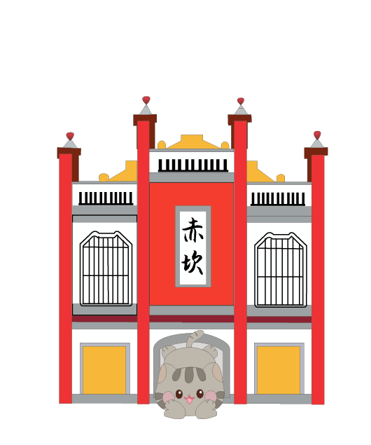 国风意境场景,红墙古建筑前,猫咪静座瓦顶,花枝点缀留白,营造静谧、古韵氛围,强调色彩对比与东方美学