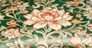 新中式纹样设计,盛开的牡丹花和叶子,新艺术运动风格,William Morris,藤蔓,水彩,极繁,精致