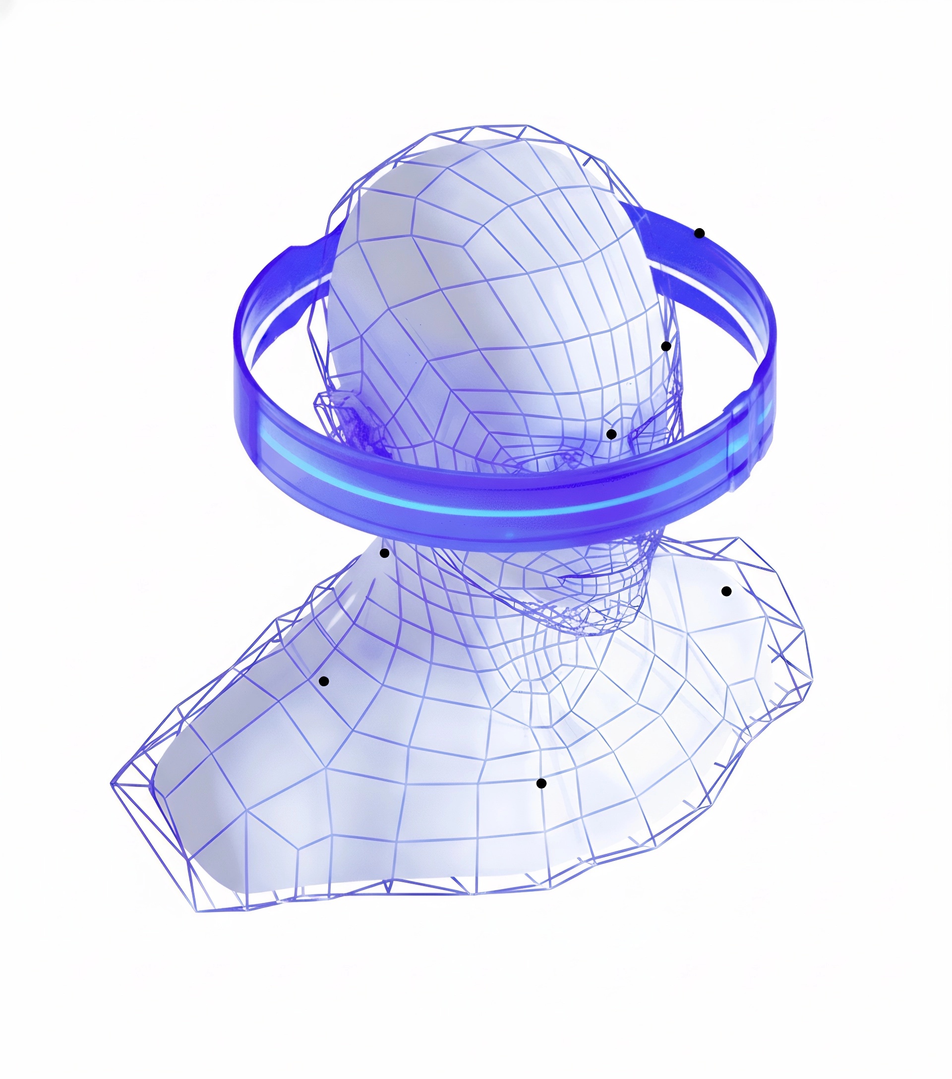 全息投影呈现的虚拟女性人形,发光线条勾勒年轻友好面容轮廓,半透明材质显露内部流动数据流,身着现代简约风格且点缀科技纹路服饰,人物站立姿态配合悬浮手势操作界面,背景是数字矩阵构成的星空,柔和渐变蓝白光源从脚下向上晕染,3D建模,4K画质,特写,科技感、未来感,精确呈现织物动态与光线追踪效果,捕捉瞳孔中的代码流光