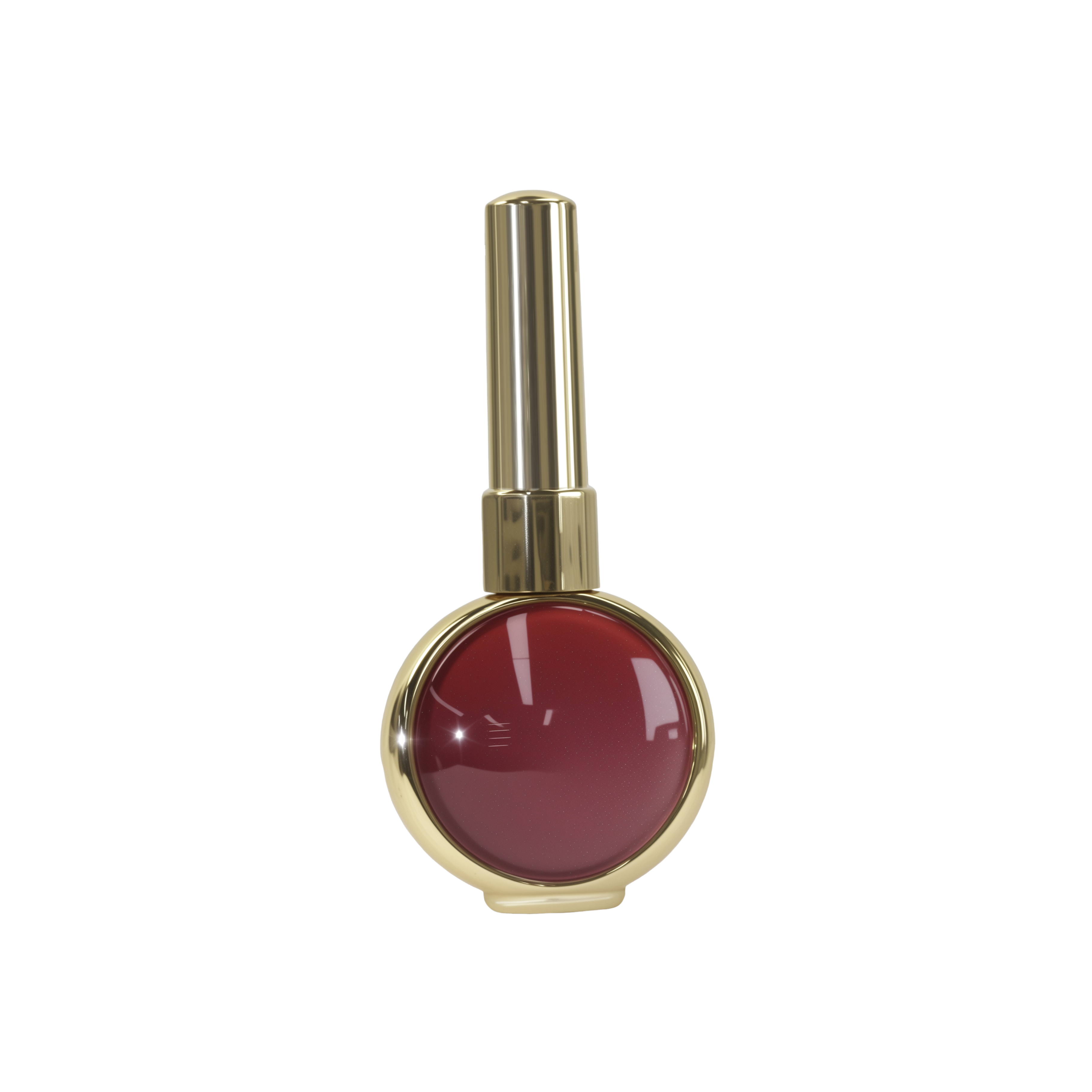 美妆产品广告图,金色外壳红色膏体的唇釉主体,无文案,简约时尚风格,特写构图,白色干净背景,柔和光影