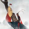 水墨风武侠人物侠客大侠高山场景站立插画素材