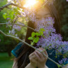 扁平,马卡龙配色,微噪点,大面积留白。画面中女孩身着鲜艳红色衣服,安静地坐在巨大的棉花植株之上,身旁是更多高大的棉花,棉絮洁白如雪,枝干为棕褐色,下方点缀着黄绿色叶片。远处是淡蓝色天空,飘浮着柔和的白云,群山轮廓朦胧,几只飞鸟正自由翱翔。整体画面采用扁平画风,色彩清新柔和,通过微噪点和大面积留白营造出清新梦幻的氛围,传递出自然与宁静的诗意美感。