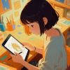 Happy reading girl cartoon element, (Flat wind illustration:1.6),cartoon,amazing,colorful,2D,Pure white background,High color saturation, no text