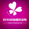 浅灰背景,珊瑚红囍字,转折处融进蝶恋花纹,扁平珐琅设计