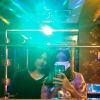 海报背景,粉色海报设计风格,居中正视图,对称仰视构图,背景是圆圆的月亮映衬着牛序和织女鹊桥相会的场影,前景设置一朵朵白云飘向天空,添加粒子光效与动态模糊技术,Octane渲染器实现金属反光与透明玻璃质感,8K狂欢场景,C4D建模,OC渲染,16K高分辨率。