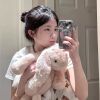 画面是可爱的卡通风格,以明亮的色彩和圆润的线条绘制。远景、广角视角,配色、风格、构图与参考插画相似,画面明亮,细节丰富,元素完整不被裁切。主体是一只可爱的卡通小马,毛发主要为白色,鬃毛和尾巴是橙红色,发型蓬松卷曲,显得俏皮。小马身形圆润,属于幼态、可爱的形象,无明显着装。它睁着大大的眼睛,嘴巴张开露出笑容,神态愉悦。小马双手环抱住一条巨大的红色锦鲤,锦鲤身上有金色的装饰图案,周围散落着许多金色的硬币和水花。背景简洁为纯白色。