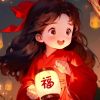 国潮萌系插画,主体为 Q 版马形象,头顶圆滚红帽的欢快小角色;小马手持红底金鳞带流苏的鲤鱼灯,旁配红圆灯笼 。风格是线条圆润、造型软萌的国潮风 。色调以暖黄、红色为主,金色(鱼鳞)、彩色几何装饰点缀,高饱和且过渡柔和 。采用中心对称平视构图,背景简洁,元素环绕分布 。细节突出小马的细节、围巾褶皱、鱼灯光泽与流苏、灯笼纹理、彩色装饰动态,以及角色欢快表情 。