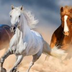 3D 卡通风格,金色与白色相间的骏马,周身环绕金币、比特币等财富元素,背景简洁白色,凸显财富寓意,画面比例 9:16 。
