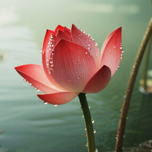 画面以淡蓝、浅白为主色调营造清新氛围。天空中有一轮红日,几只飞鸟点缀;下方是水墨风格的山水,山峦连绵,山间云雾缭绕,还有平静的河流,水面倒映着山水与飞鸟;一只丹顶鹤正展翅飞翔于山水间,姿态优雅。整体画面意境空灵、雅致,充满传统节气的诗意与美感。
