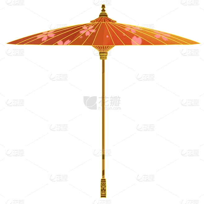 中国风明黄色油纸伞粉色花瓣古典诗意东方美学插画
