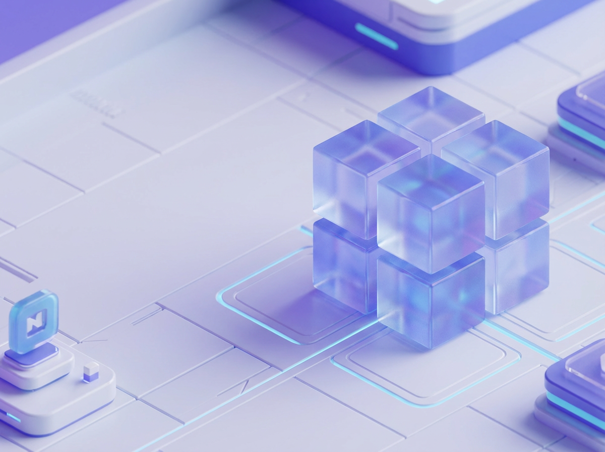 3D渲染,8K细节,科幻医疗风格,画面左侧一个由发光线路与透明玻璃构成的独立医疗数据核心,全息影像悬浮其旁,内部有脉冲蓝光数据流动,背景为简洁的雾化深蓝色,增强空间感。