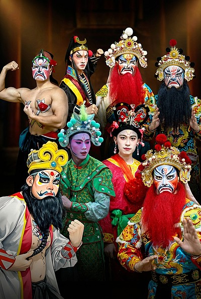 卡通京剧贴纸,旦角角色,桃红脸谱樱桃小嘴,大大眼睛圆脑袋,珍珠头饰流苏细节