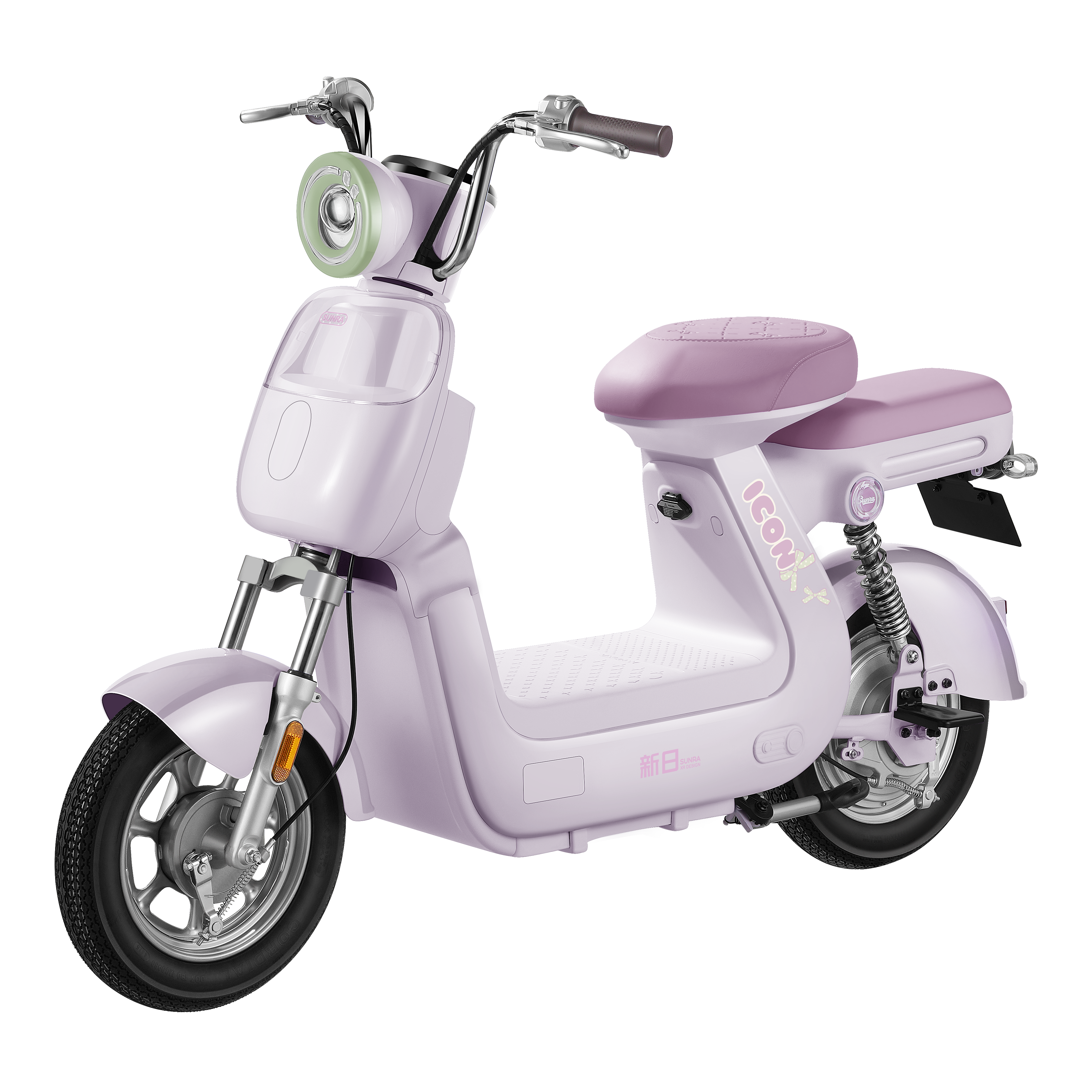 透过小巷尽头大门可见天空飘几朵白云。前景不规则石砖铺成小巷,两侧古老建筑爬满绿色藤蔓,左侧建筑门口停放着电动车,墙上挂木质灯笼和编织篮,右侧建筑旁有绿植和小凳子,尽头双开木门,门上方拱形木质框架带玻璃窗格