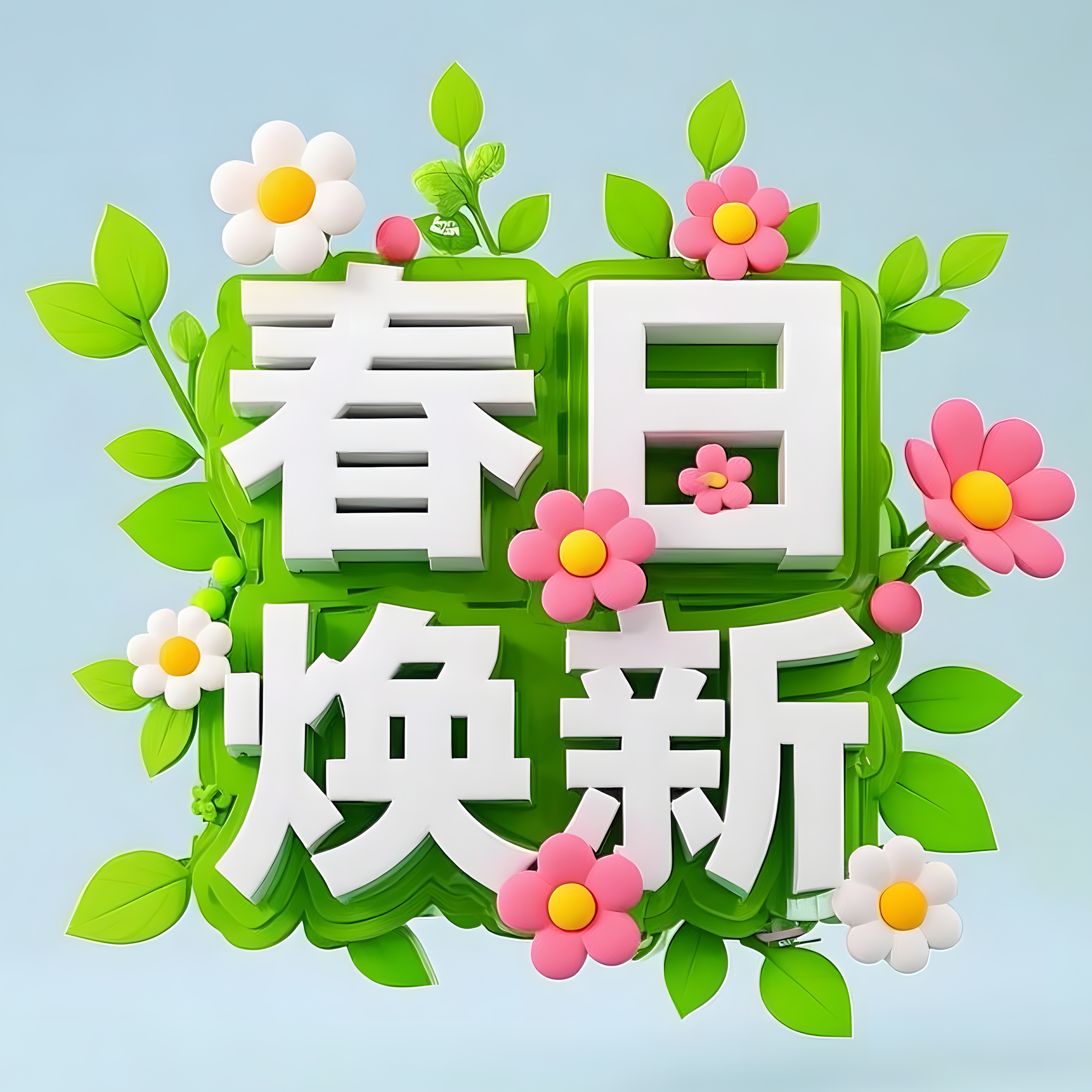 立体变形字体设计“春日特惠”,适合做春天海报使用,活泼可爱风格,纯色背景。大面积留白