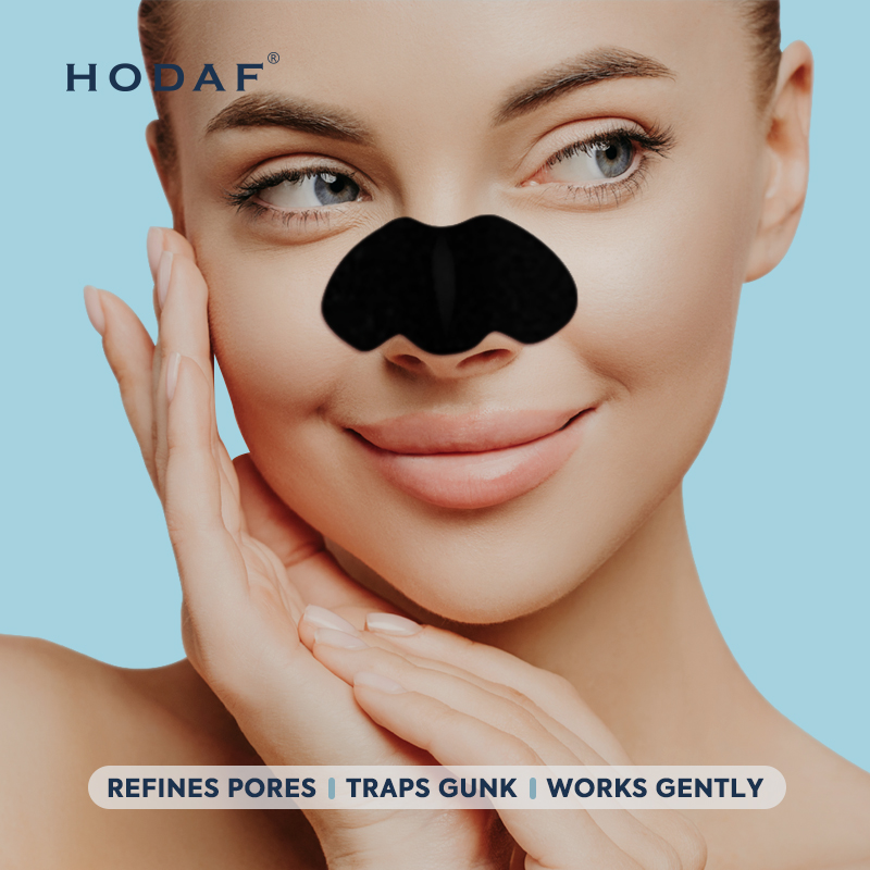 将图中美女加上鼻头贴,黑色的贴纸
