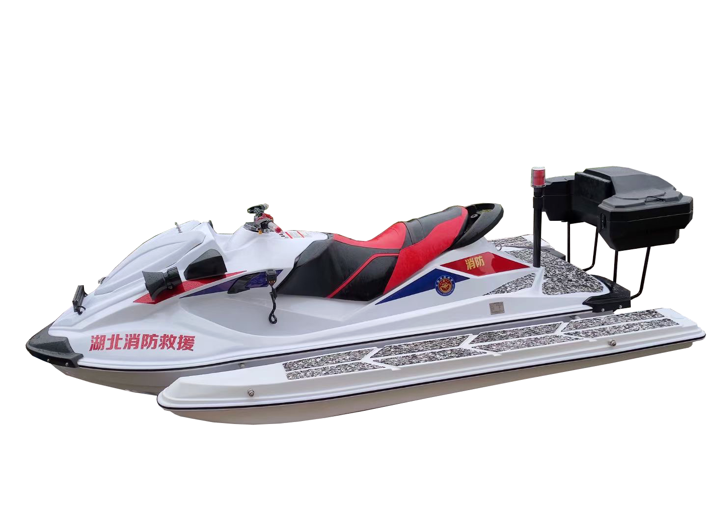 一个27岁青年在碧海蓝天下驾驶摩托艇的视频,穿着橙色救生衣,天蓝色T恤。阳光洒在他身上,摩托艇在海面飞驰,激起白色浪花,背景是广阔蓝天与远处隐约的岛屿轮廓。